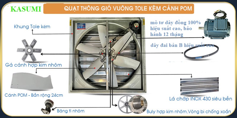 Loại sản phẩm: Quạt thông gió vuông cánh POM